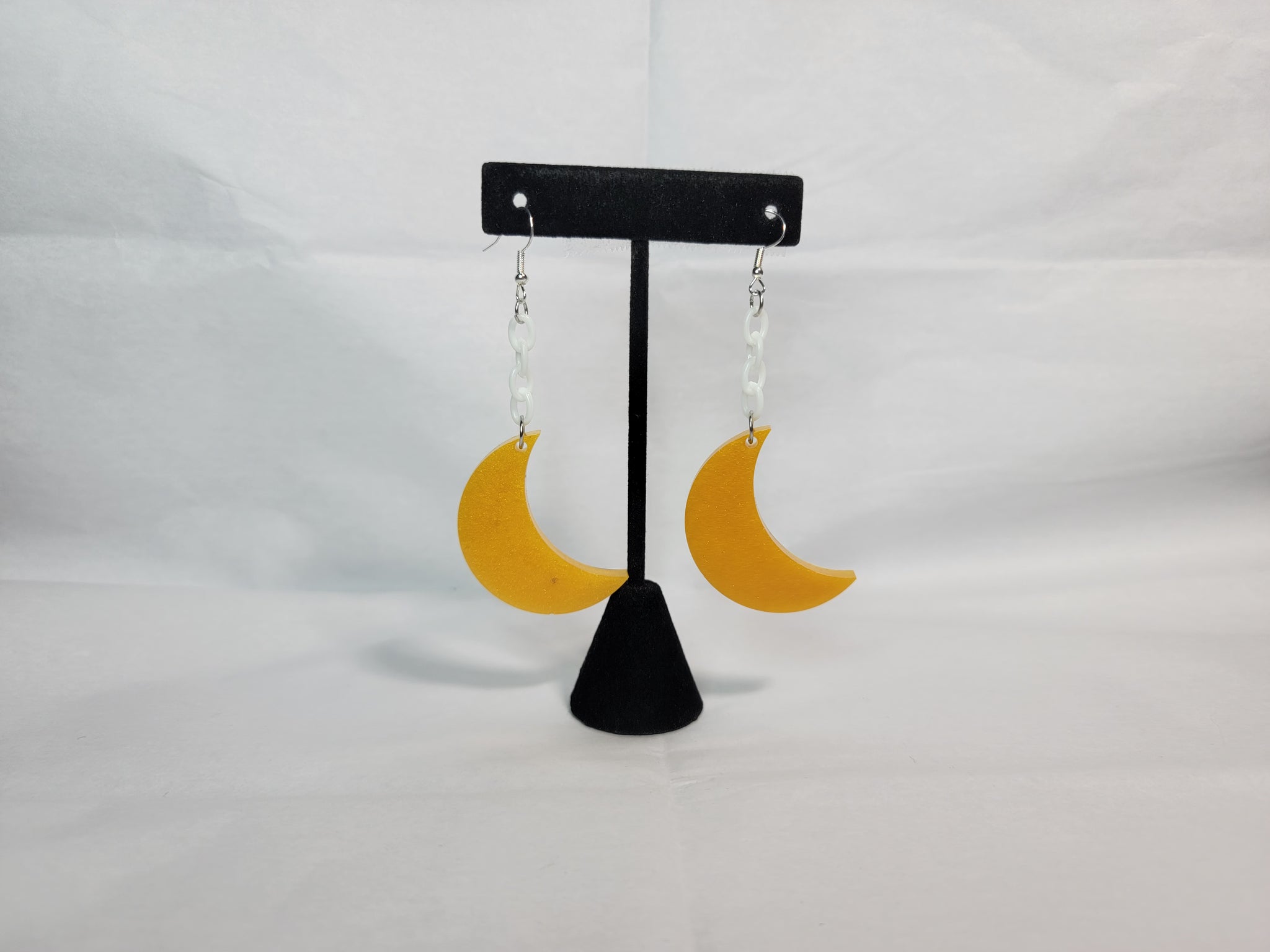 Resin moon charms. Choose between yellow, orange, and purple. 925 sterling silver hook with a silicone backing.